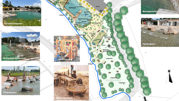 - Zur Minimierung der Baukosten werden die vorhandenen Strukturen des Schwimmer- und des Nichtschwimmerbereiches soweit möglich beibehalten